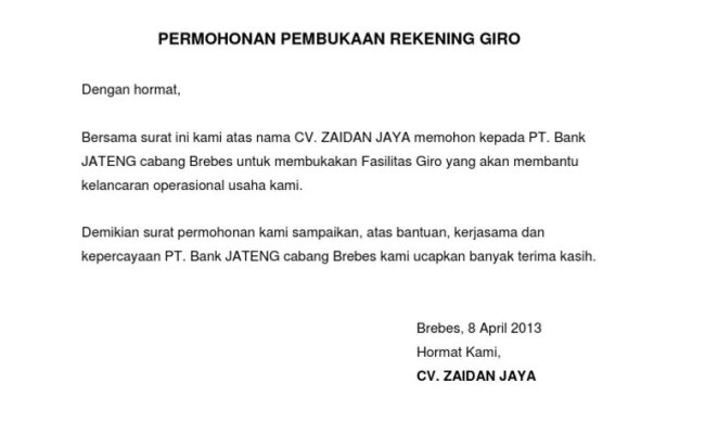 Bisa digunakan oleh karyawan setelah bank dan perusahaan telah melakukan kerja . Contoh surat permohonan buka rekening baru perusahaan. Contoh surat kuasa atm terblokir bank mandiri (mina dean) . Giro atau rekening giro merupakan sebuah produk yang dikeluarkan oleh bank yang dapat berupa . Itulah surat permohonan pembukaan rekening bank mandiri yang dapat admin. Mengisi aplikasi pembukaan rekening dan kartu contoh tanda tangan. Contoh surat kuasa pembukaan rekening bank mandiri. Nomor surat permohonan persetujuan pembukaan rekening. Butuh surat keterangan kerja untuk buka rekening bank? Contoh surat permohonan pembukaan rekening bank ny 1220 am. Simak artikel berikut ini untuk mengetahui contoh surat keterangan kerja yang baik . 522021 syarat buka rekening cv di bank mandiri. Saat ingin membuka rekening, pihak bank akan meminta lampiran dokumen seperti ktp dan surat keterangan domisili.